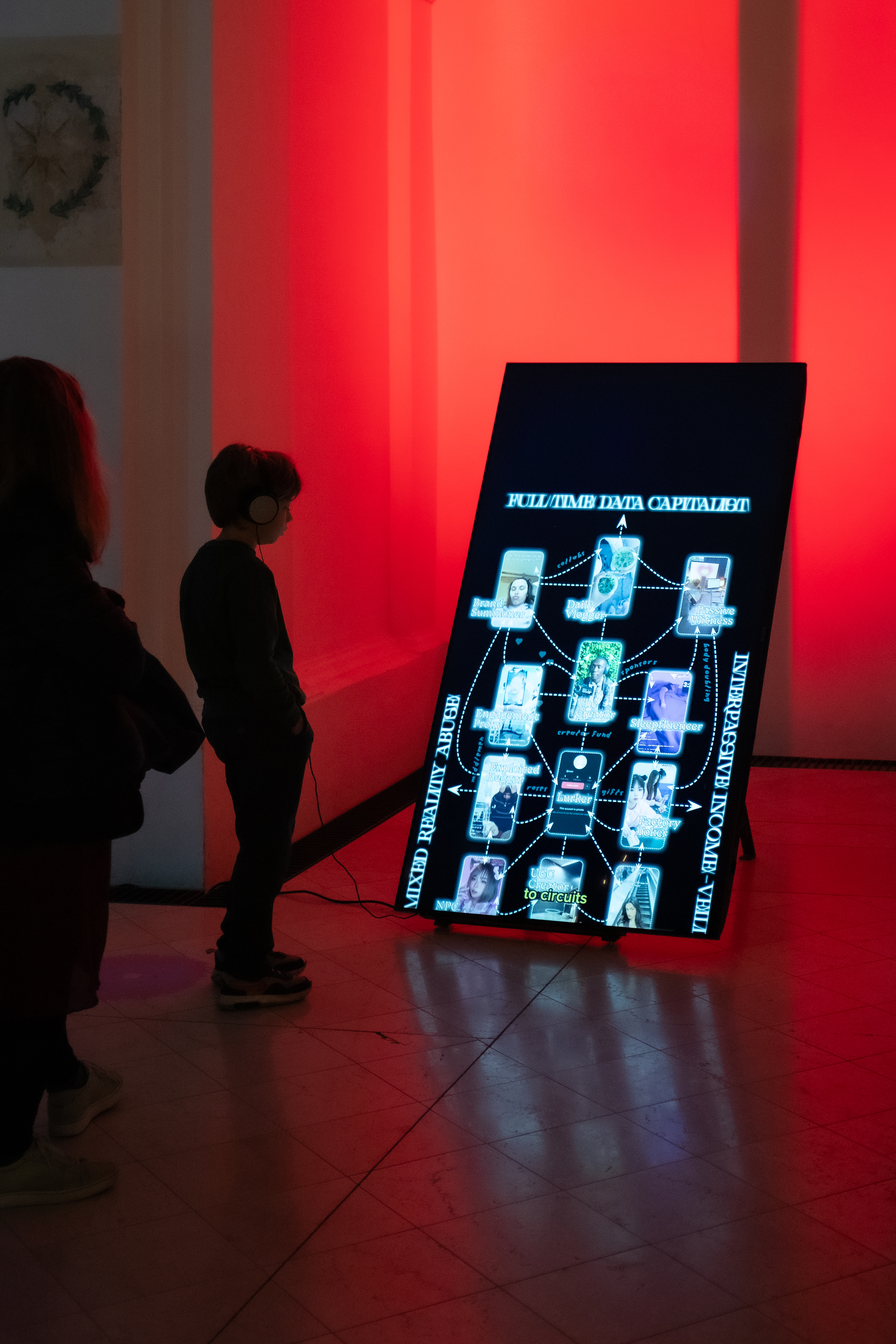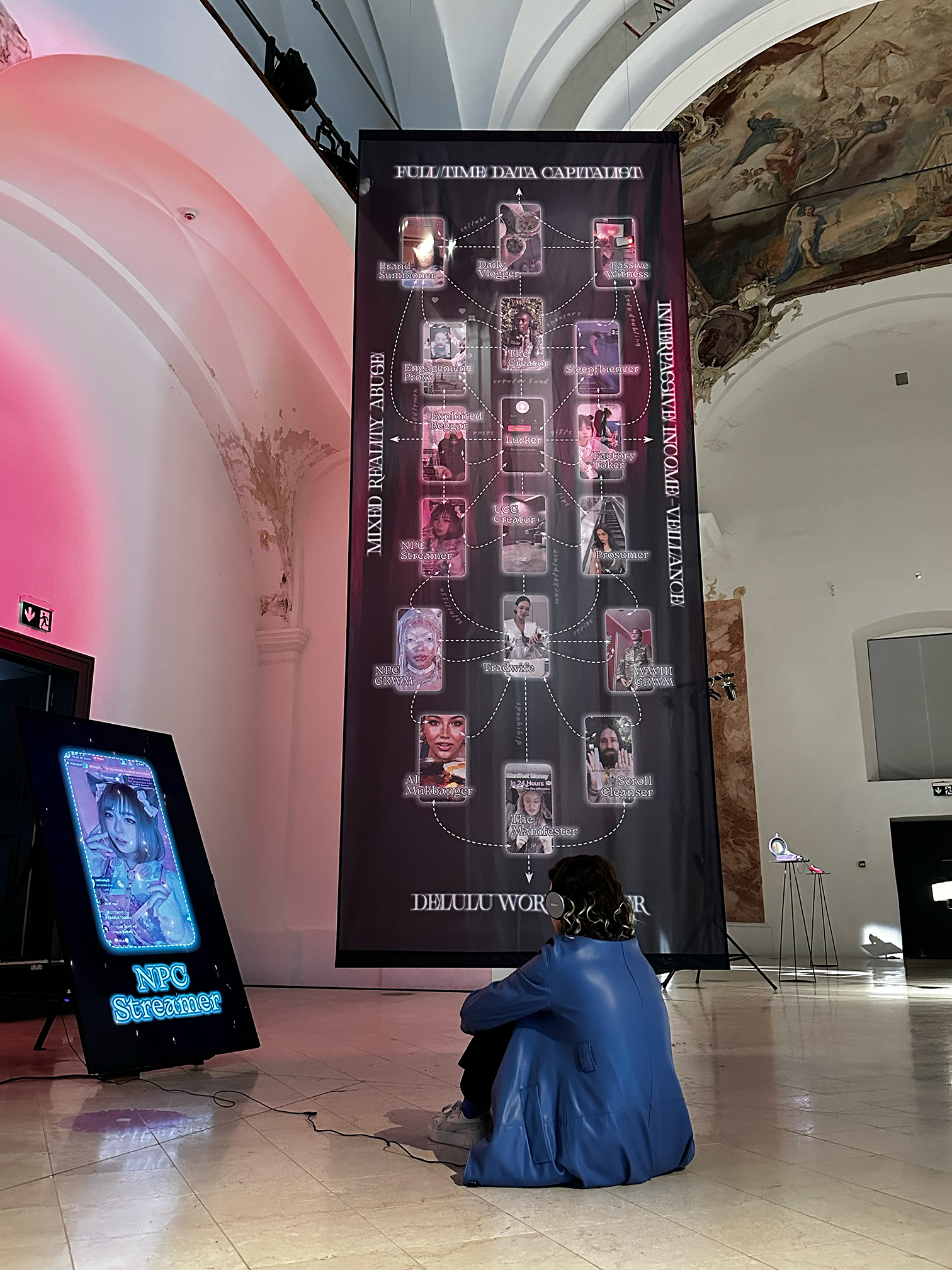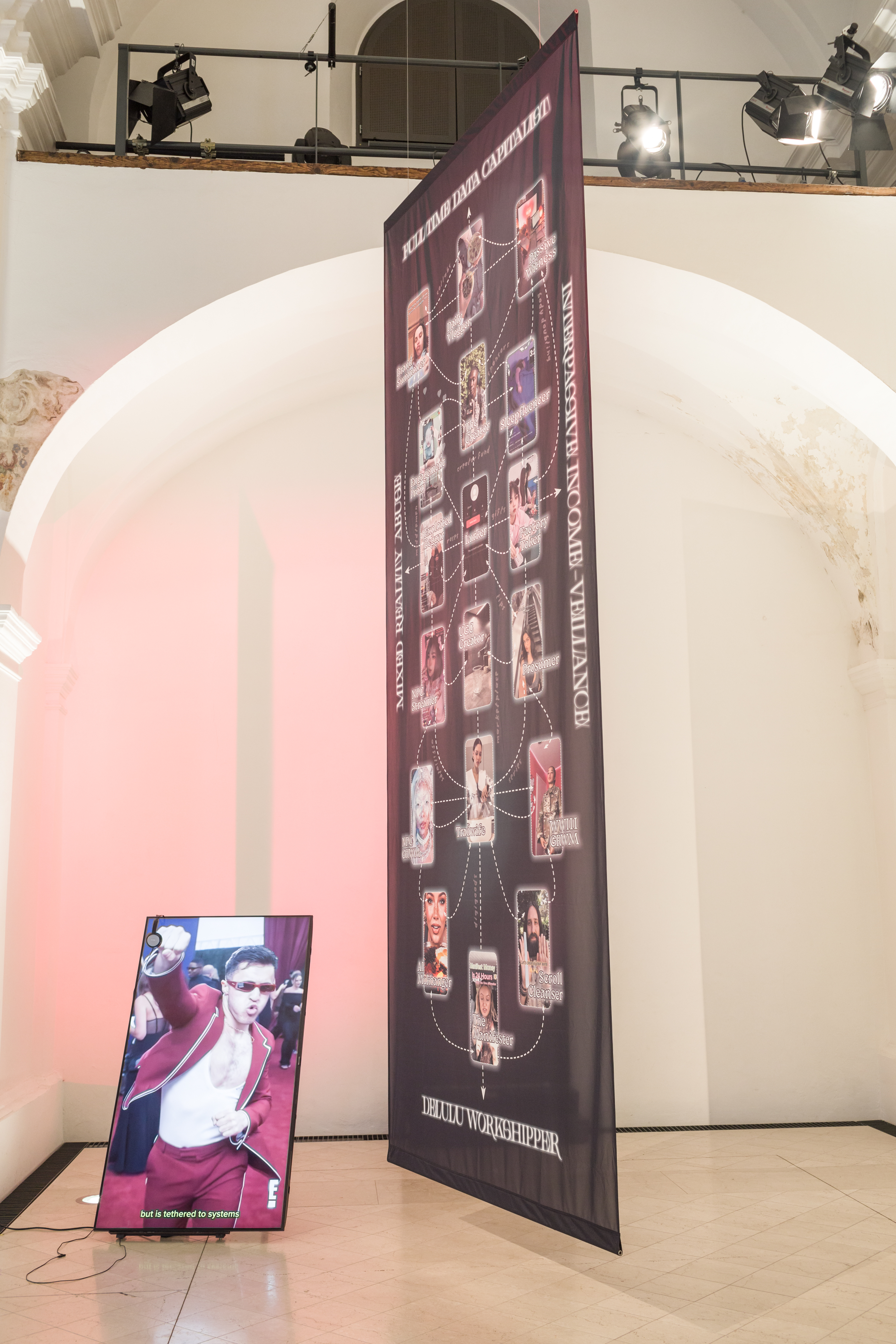 The neologism Workshippers, a fusion of “worship” and “work”, highlights the emotional and spiritual dimensions of digital labor, where personal life becomes indistinguishable from productivity, and the self is continually offered up to the algorithm in a cycle of exploitative rituals.
