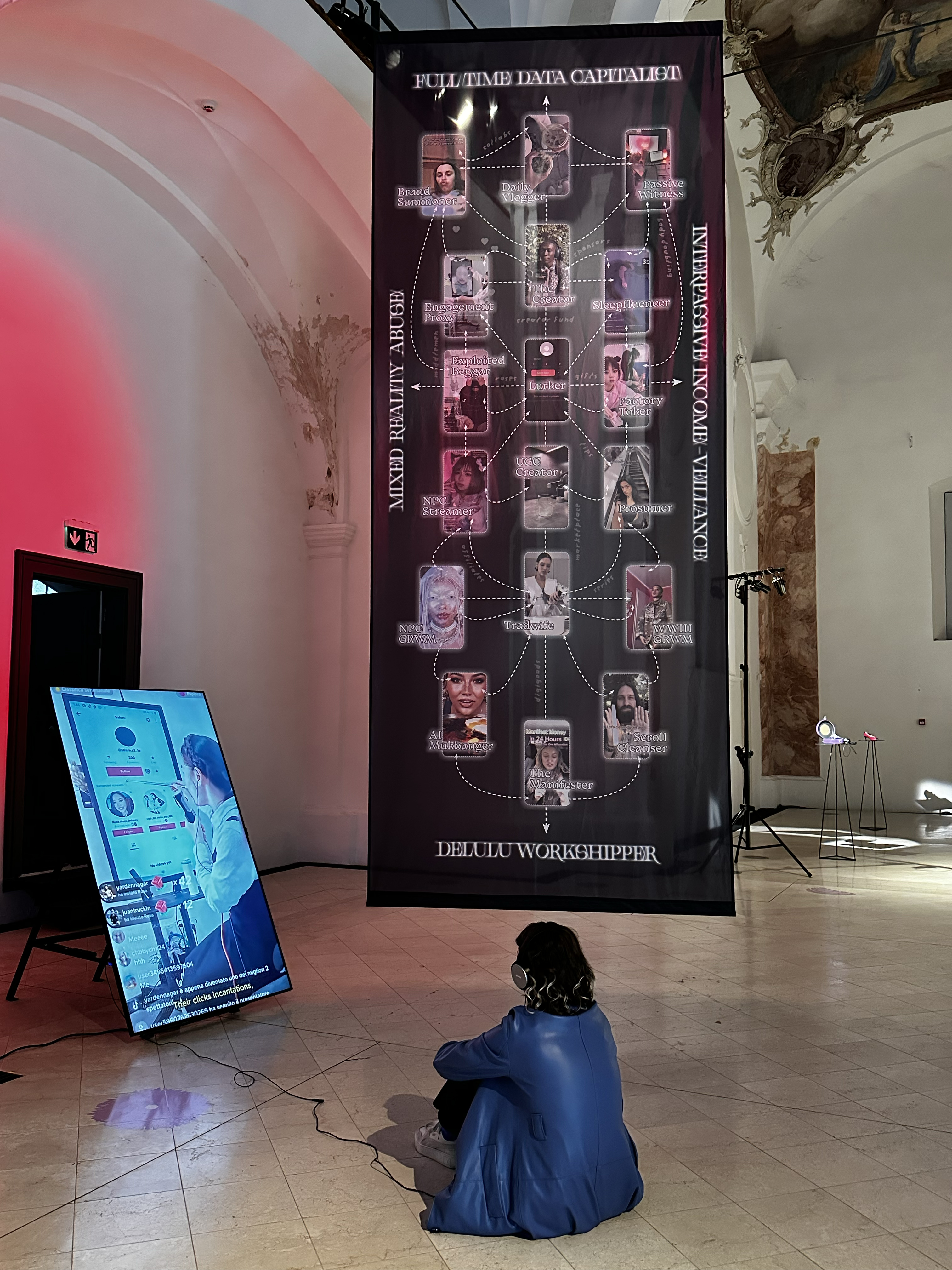 Platform Workshippers is a research-based project that maps the blurred boundaries between labor, control, and visibility within centralized social media platforms. It explores how users become both subjects and agents of participatory control, blurring the line between peer interaction and systemic surveillance, engaging in invisible forms of free labor while navigating the tension between exposure and self-preservation.