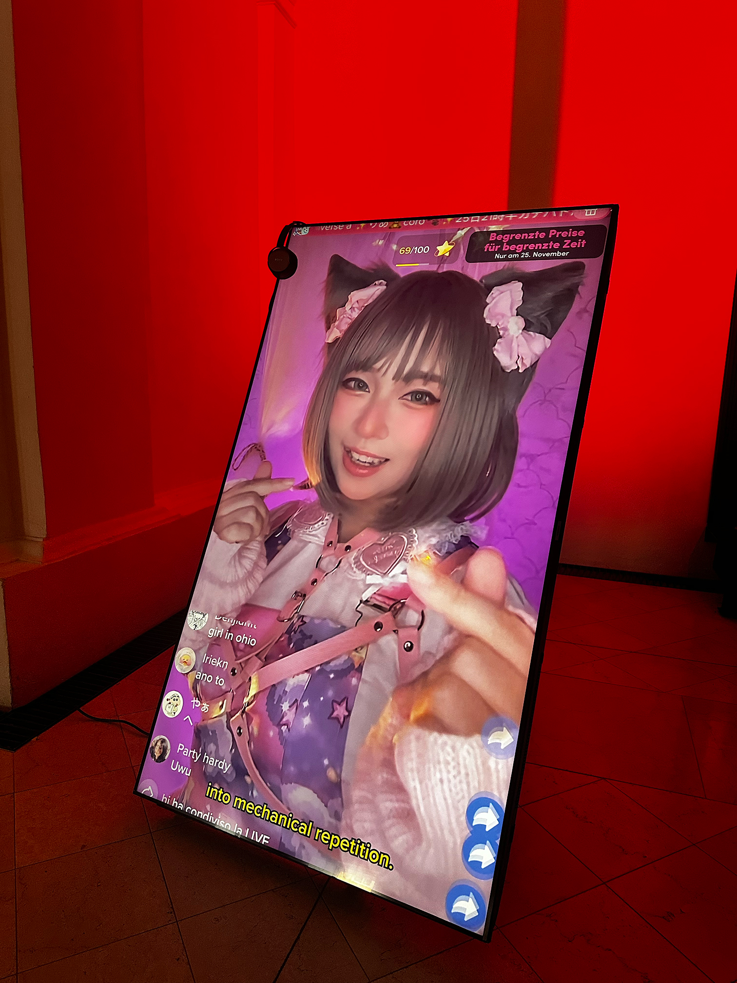 However, beneath this veneer of shared engagement lies a secondary layer of extraction, as the process often serves as an additional source of income for the worker. Consequently this endeavor takes on a meta-work dimension, as the act of streaming their daily labor not only allows them to connect with viewers but also facilitates the accumulation of supplementary income through viewer donations.